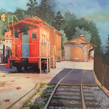 ‘Red Caboose’ Watercolor Print – Mick Williams