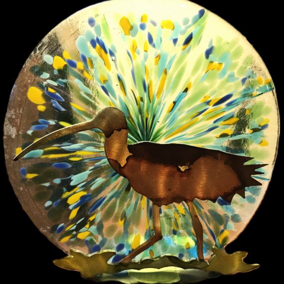 Our glass fused black platter with a lacy variegated green leaf is a charming piece that is both artistic and functional. Crafted by Irene Vangsness.