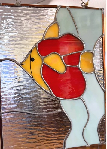 Item # 1002 stained glass ‘Fish with Coral’ (Made 8/2023)