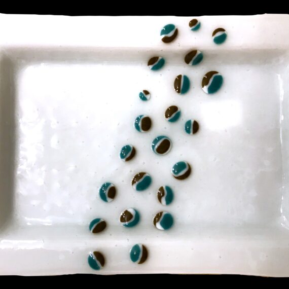 Clear glass fused with a flowing infinity symbol and heart to bring your candle flame to flickering life. Glass work crafted by Bev Dyas of Blonde Moments.