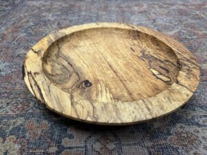 Shallow rimmed bowl hand-turned from beautifully spalted pecan wood. Created by Steve Ramsey of Carve Diem.