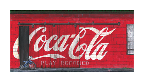 Coca-Cola “Play Refreshed” sign and slogan inspired illustration painting is created by Dan Murphy and reproduced on canvas.